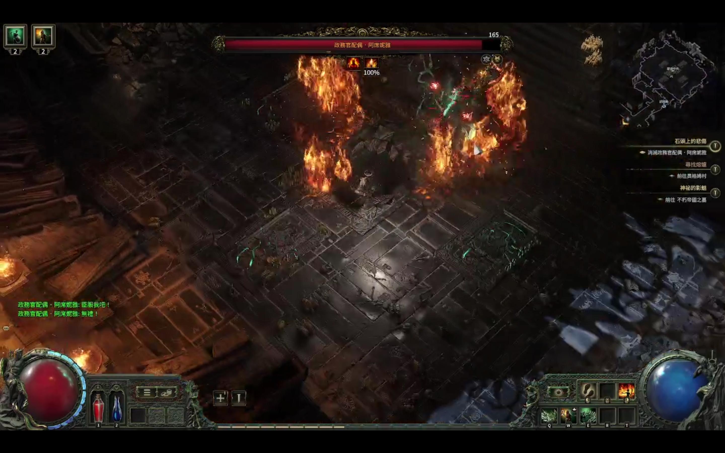 击杀boss后这里赠送了三级主技能宝石,我这边也是先将骷髅纵火者点出来并配上多重射击和火焰灌击两个辅助技能