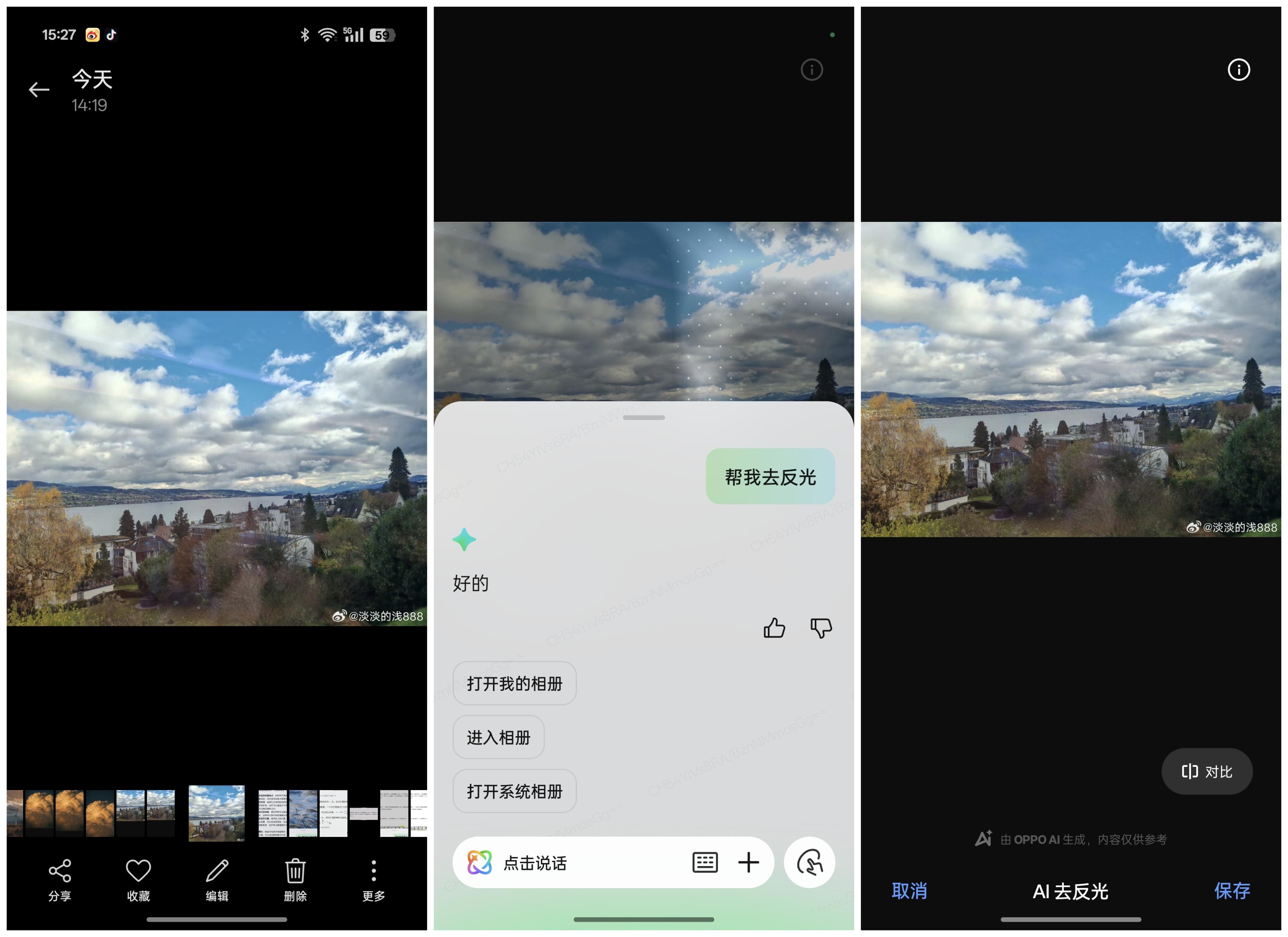 (ColorOS 15一键问屏能“说句话”修图去反光)