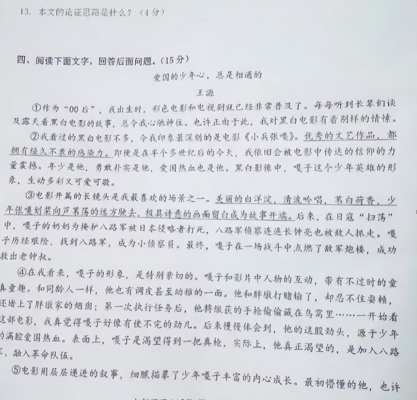 他的一篇《爱国的少年心》还登上初三阅读理解。
