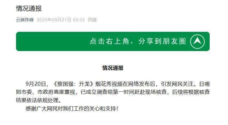 始祖鸟烟花秀一共炸了3次?西藏生态环境厅:将形成一个三级调查组
