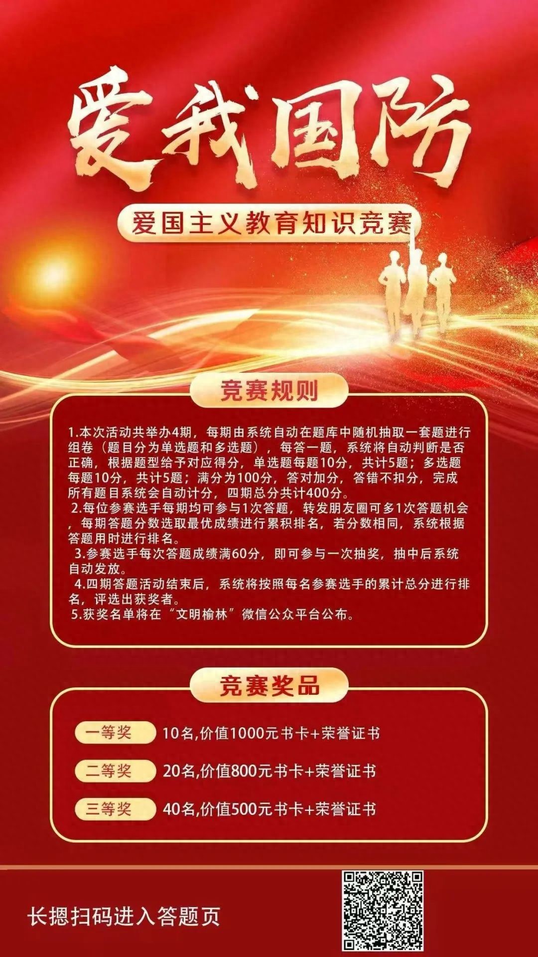 榆林市“爱我国防·爱国主义教育知识竞赛”有奖竞答等你来!