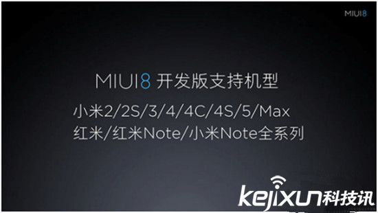 具体,小米将于5月16日正式开启MIUI 8论坛邀请内测,6月1日开放公测,6月17日会向更多米粉送上开发版。MIUI 8开发版将会支持小米手机2/2S/3/4/4C/4S/5/Max/红米/红米Note全系列以及小米Note全系列机型。