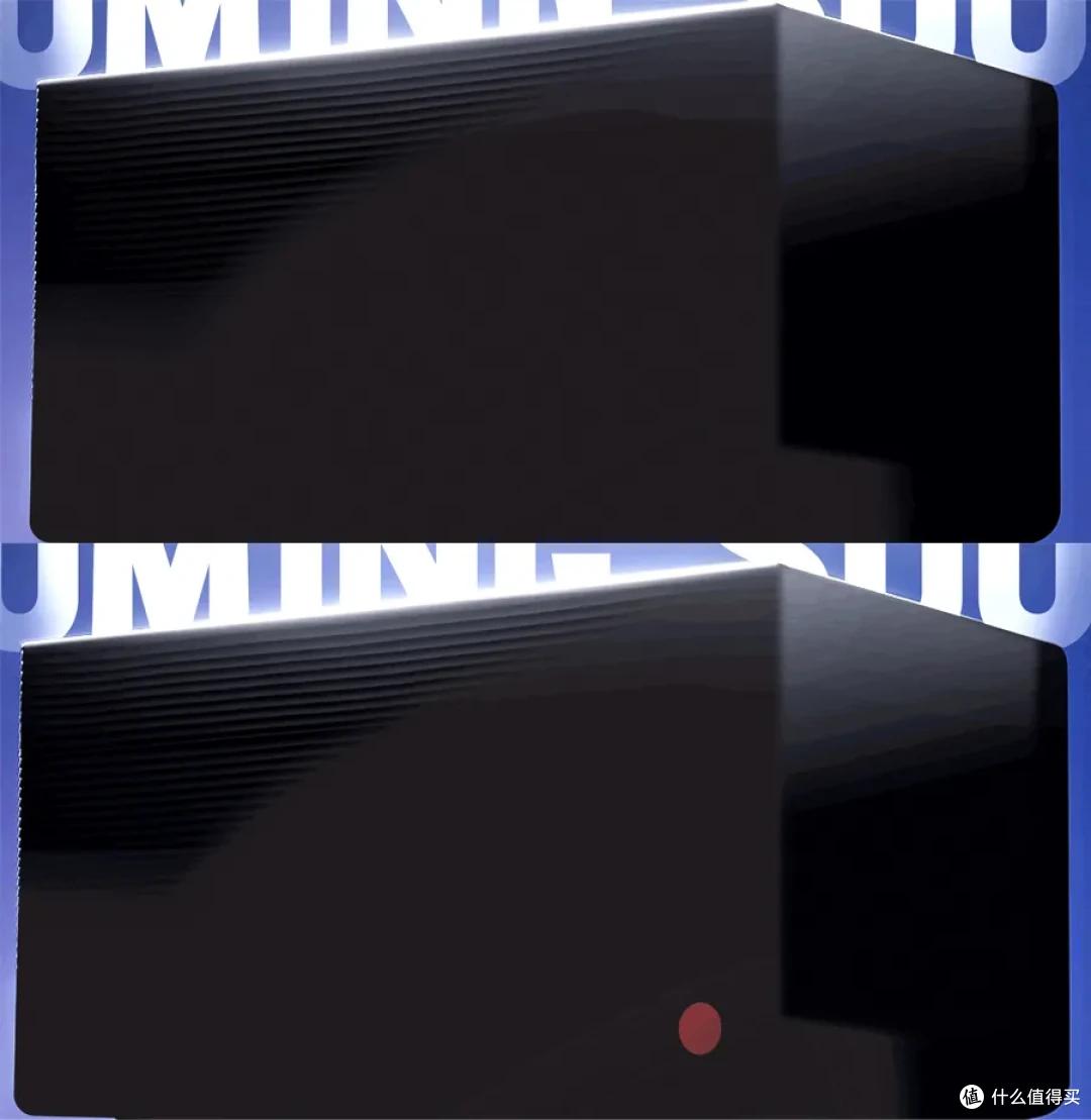 而这涂抹的意图也很明显,为了把接口,指示灯,按钮等隐藏了。给大家一点神秘感。横着的凹凸纹理,则是理科生迷恋的增大散热面积来散热,这一点和飞牛那个800多的硬盘柜如出一辙,好看不好看,你说了算。