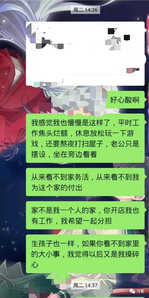 比如聊天记录里说到的家务活,完全可以就事论事说:“有爸妈来帮忙做饭还不够,我们家里应该再请一个保姆钟点工。”