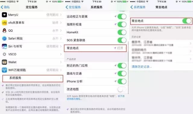 消灭方法:打开隐私-定位-系统服务-关闭常去地点。