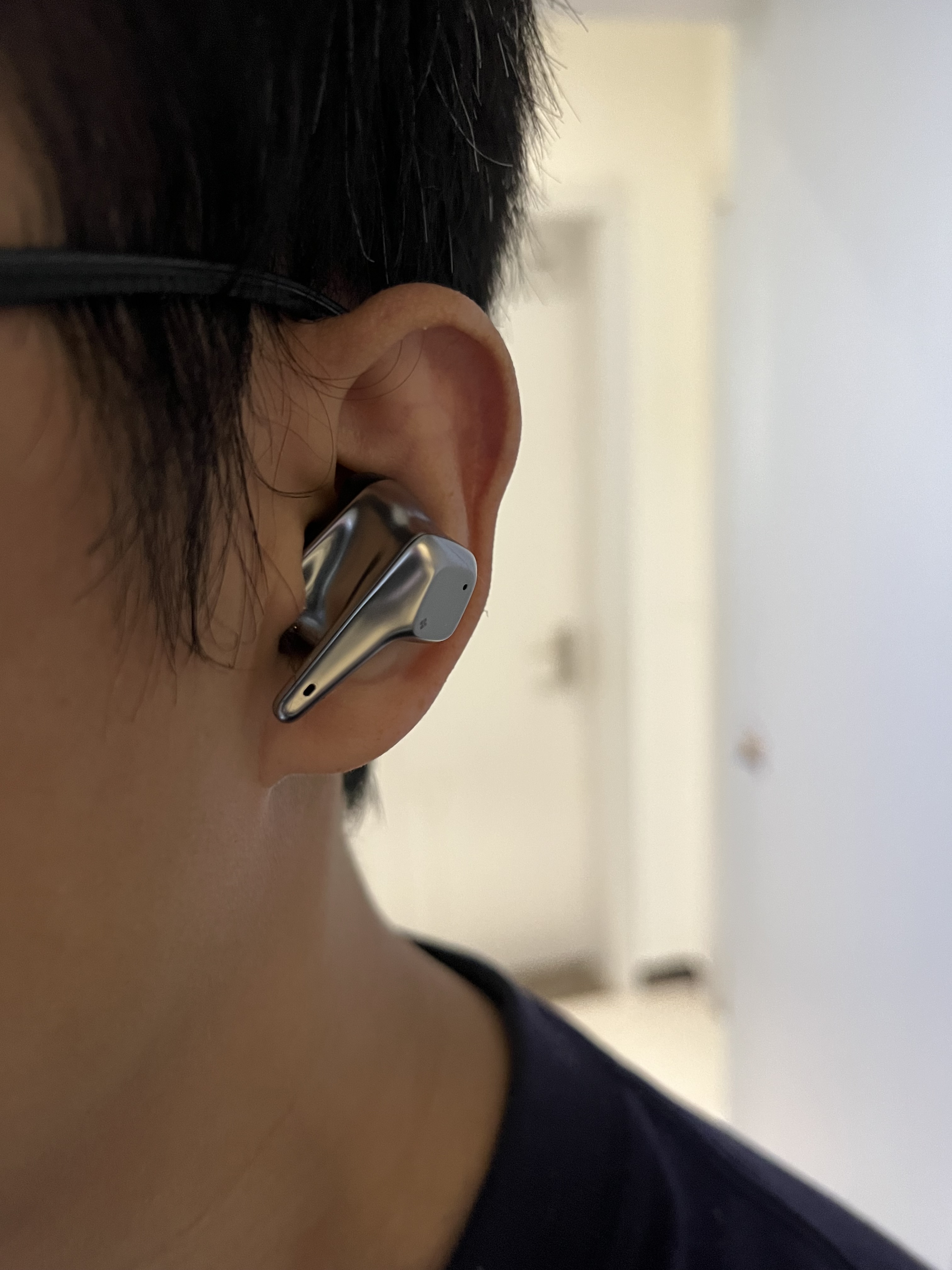 但这种类定制效果的,与耳朵大面积的贴合设计,也让它的底壳比常规TWS“大”挺多。