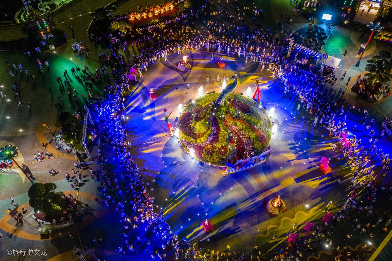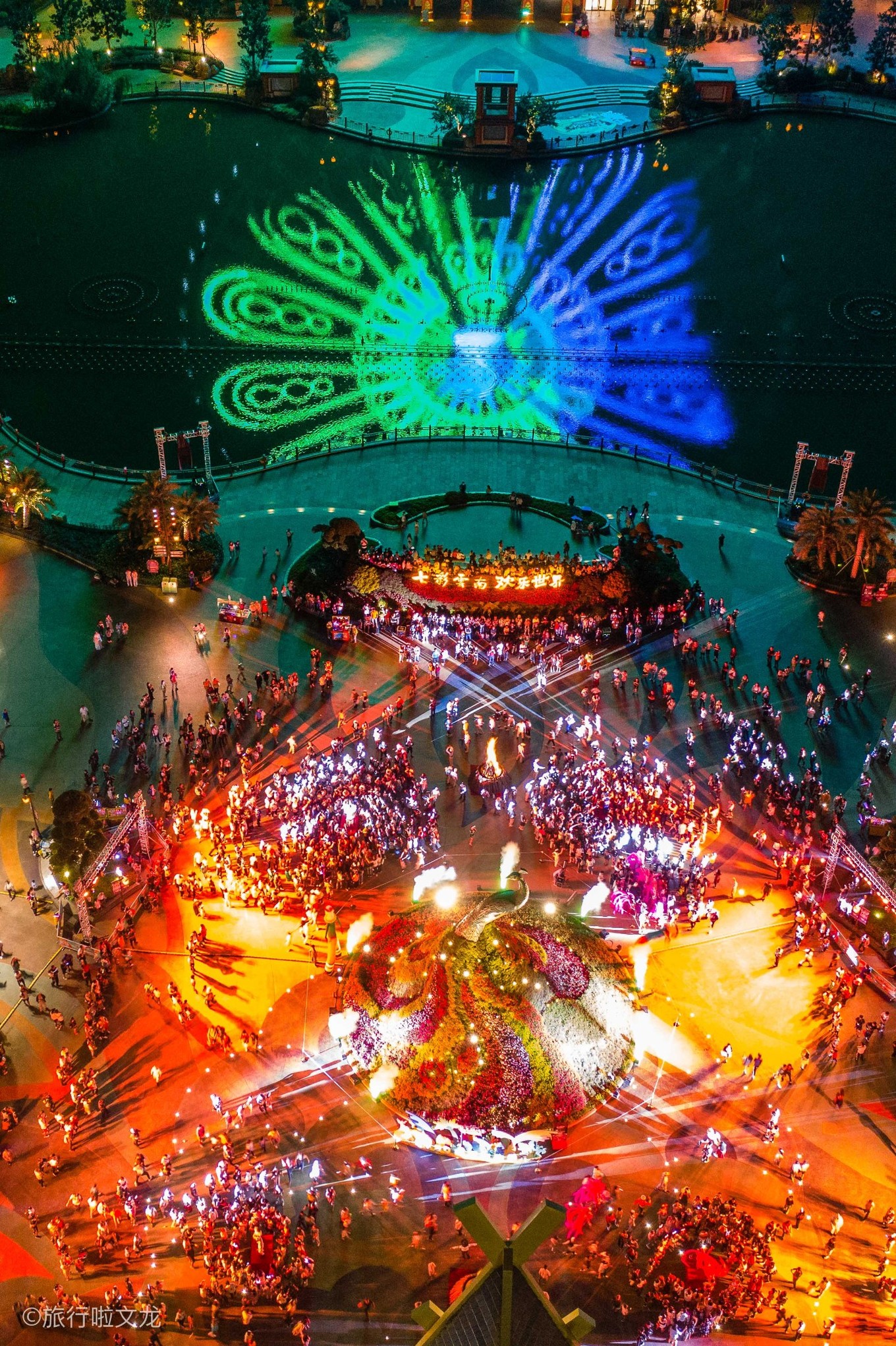 这次在昆明,在滇池旁,在这个很大的古滇名城景区,白天欢乐世界玩了一天。到夜晚还有篝火晚会,还有无人机表演,还有烟火表演。