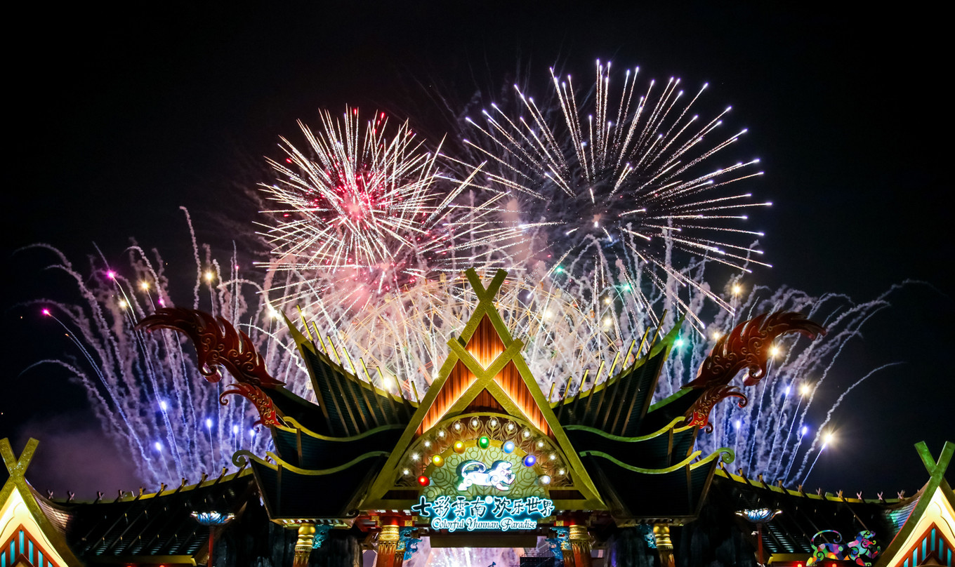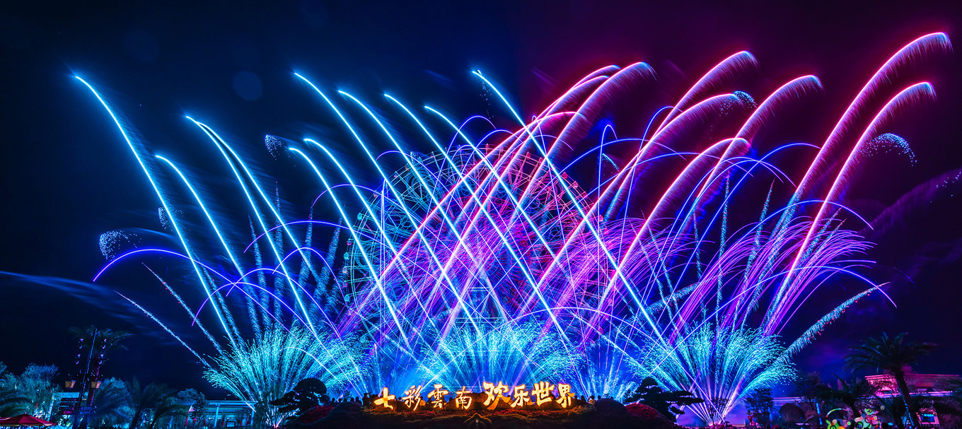 美好的事情,似乎总是陪伴着美好,七彩 云南 欢乐世界,现在每周末还会有烟火表演,一天的愉快心情,看到美丽的烟花让人更加不舍了。
