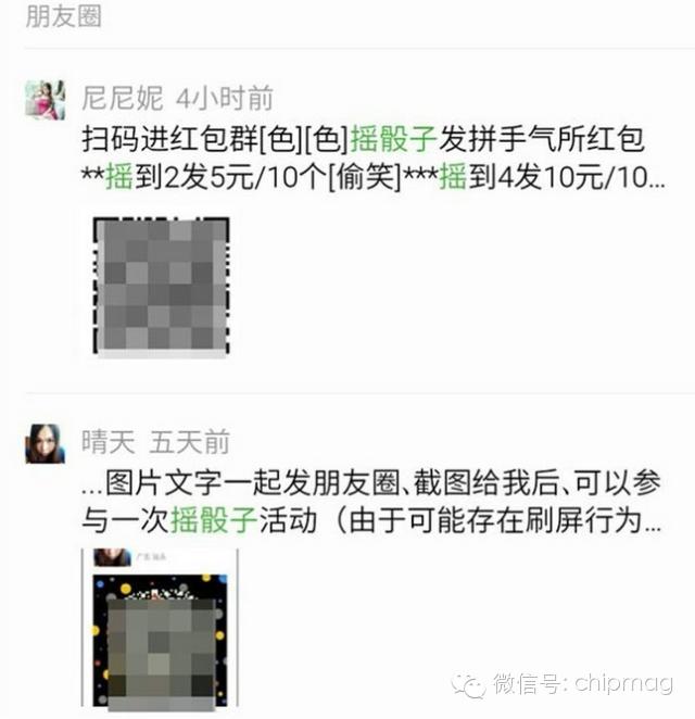 有很多小伙伴发现他们的在朋友圈里有入群的信息,而其中的关键词都是“摇骰子”和“发红包”,有微商借着这样的形式做推广,而更无耻的是借着“摇骰子”来圈钱的骗子。