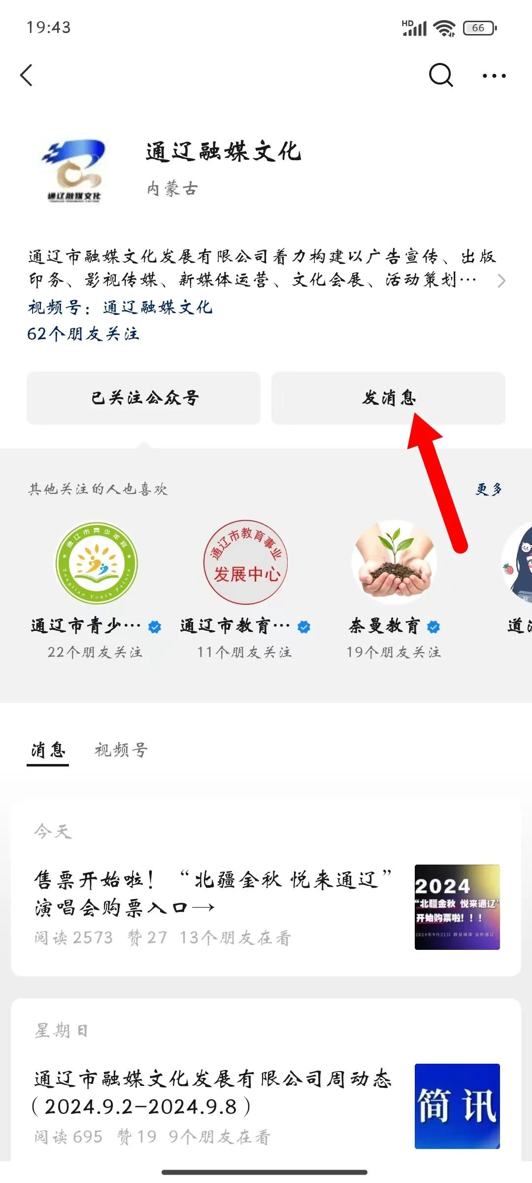 2、点击发消息;