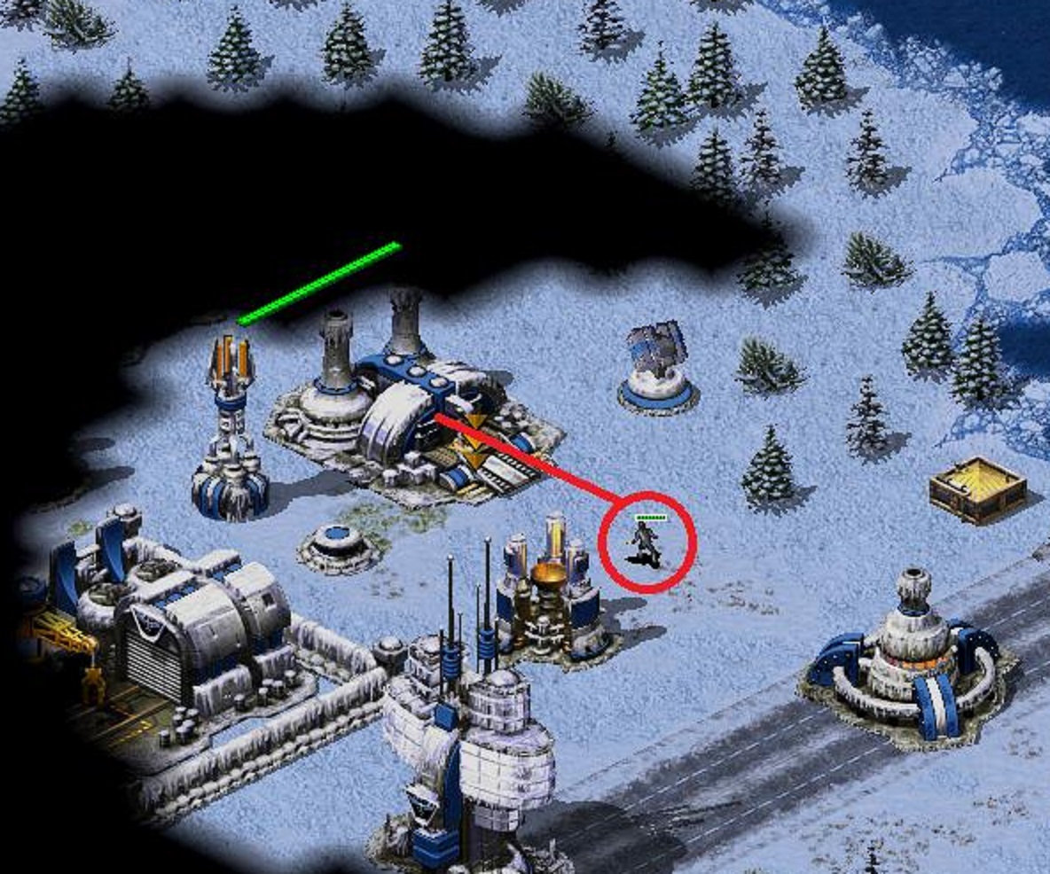 被间谍钻进建筑的后果是十分严重的,停电、减钱不说,还会导致敌方单位升星,出现心灵突击队,尤里改这样的BUG兵种。