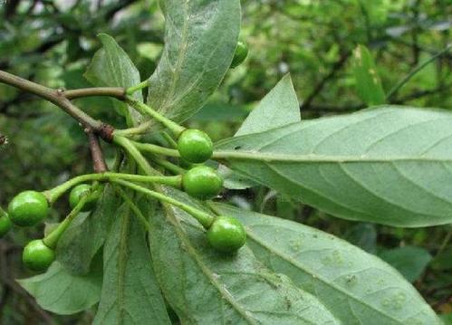 成熟时蓝黑色,果梗长5-20毫米,先端膨大,7-9月结果。
