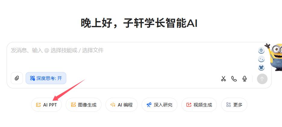 打开官网进入扣子空间后,选择上方四个功能中的ppt功能,然后就输入你要制作的ppt要求就可以了。