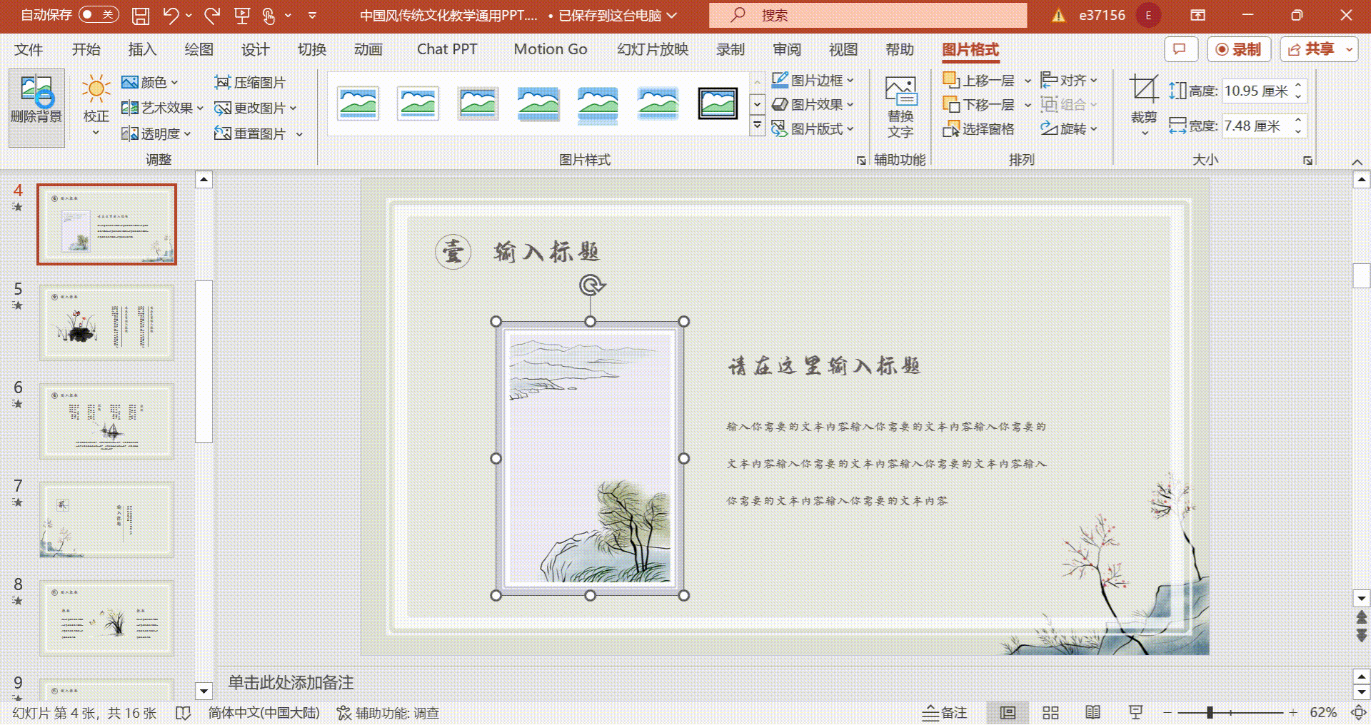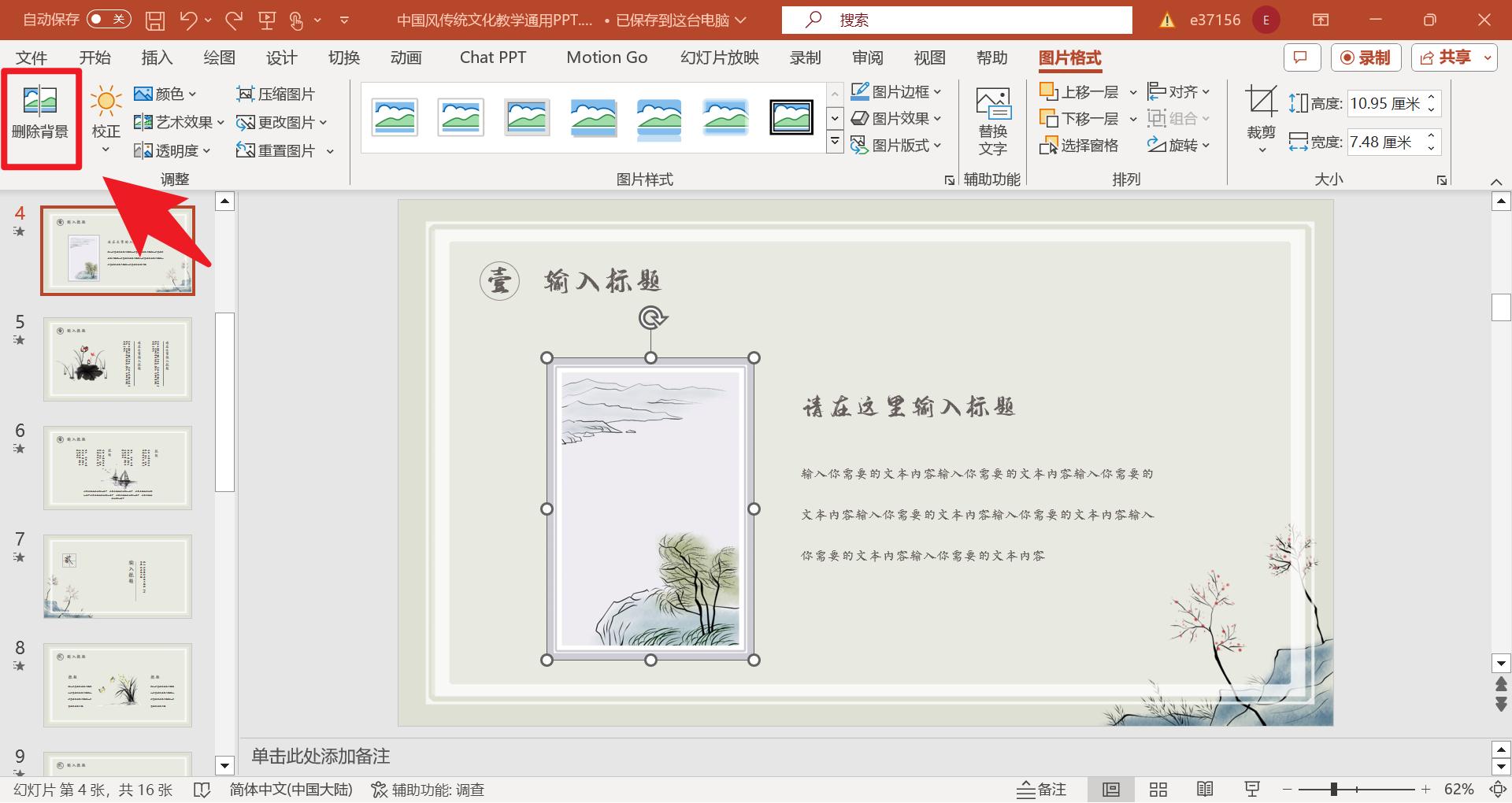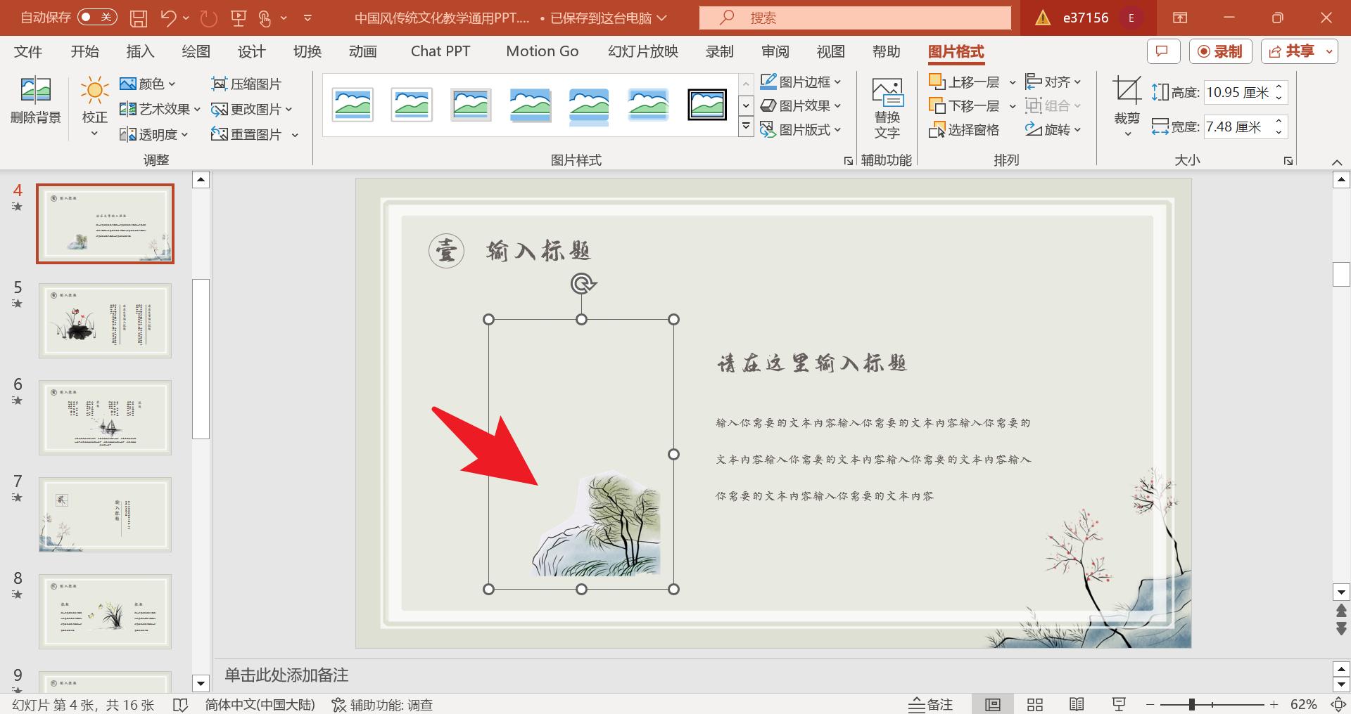 首先,用鼠标选中:要处理的图片,切换到【图片格式】选项卡;