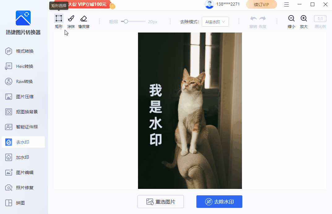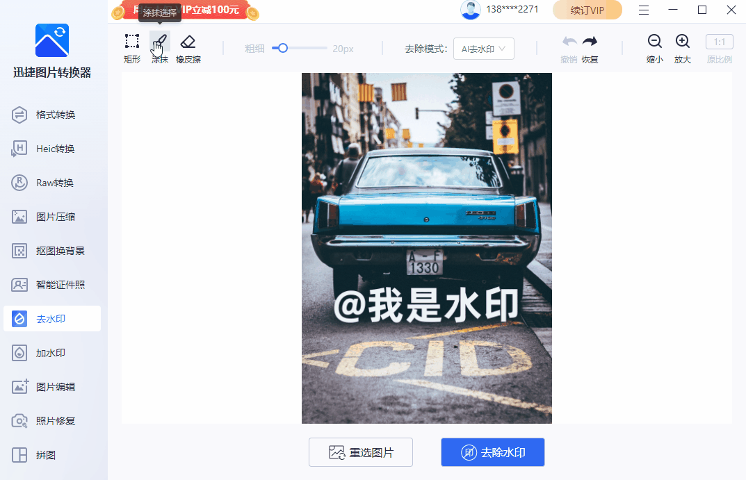 步骤二、选择水印区域,自由擦除