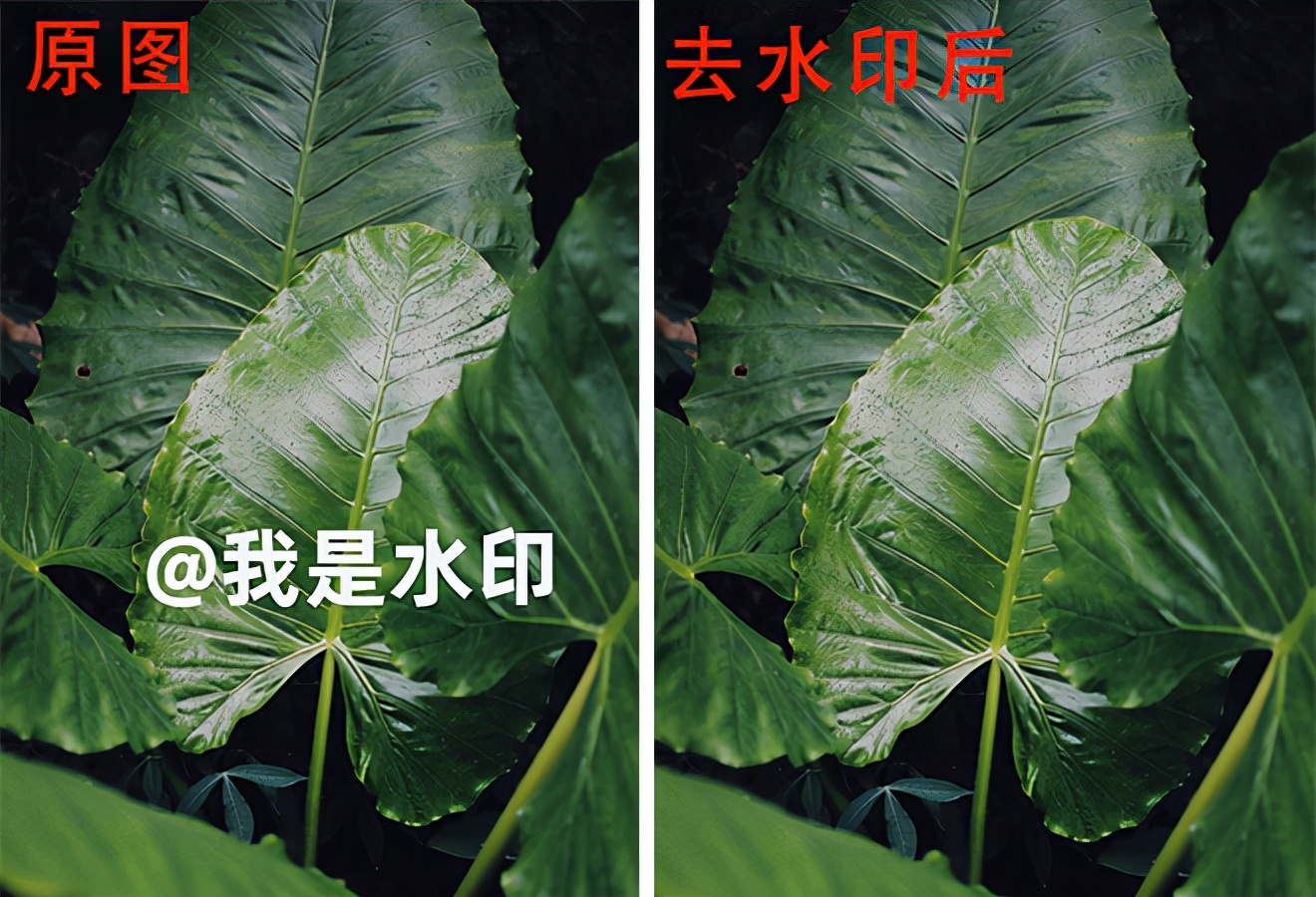 下面是2组简单背景去水印对比,图片画质和结构几乎没有发生任何改变!