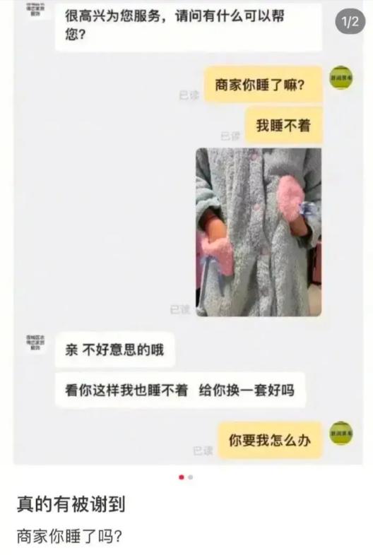 “商家你睡了吗,我睡不着”,要说人家客服可真是敬业,大晚上的还在线回复。看完女学生的买家秀后她也是一愣,直接表示“你这样我睡不着,给你换一套行吗”,赶紧的吧,还等啥呢。
