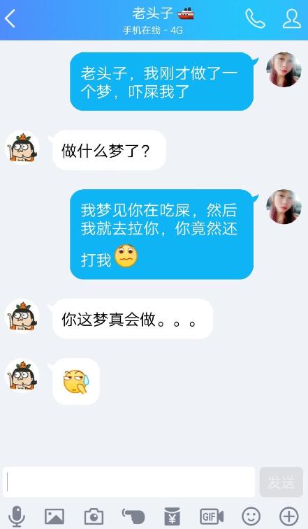 要说大学生多能天马行空,从他们的梦里就能看出来。按说人家小女生做梦都是梦见跟对方约会、粉红色泡泡的场景。她可倒好,梦见对方在吃屎自己上前去拉还被打了,真是笑不活了,还真是梦里啥都有啊。