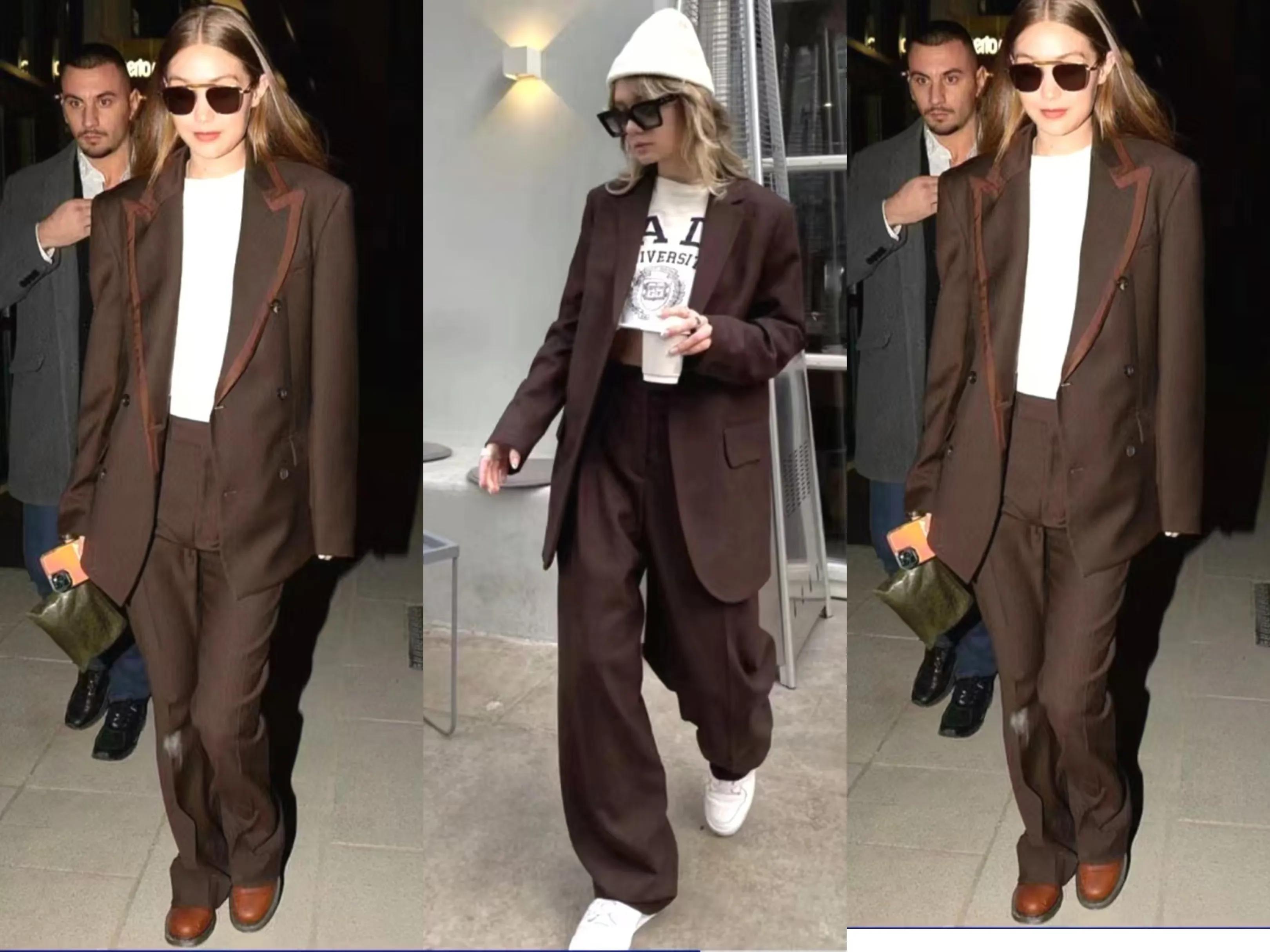 如果穿上一套棕色西服套装,则更简约高级,还省去了搭配烦恼。无论是穿上丝绒、羊毛、灯芯绒、磨沙皮等不同材质西服套装,都给人一种职场干练利落又高级气质。