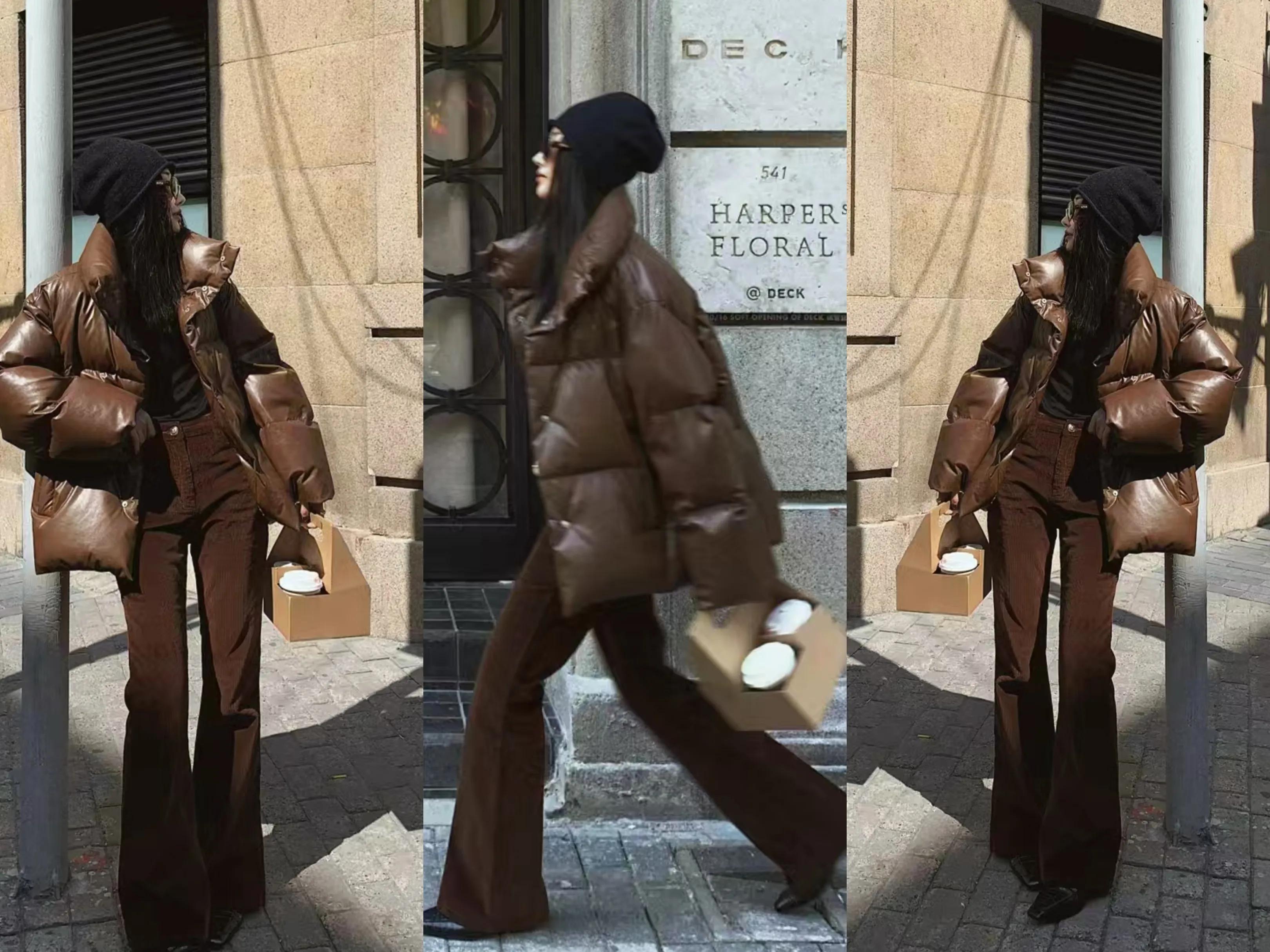 棕色裤子,无论搭配的上衣外套是毛衣、大衣还是羽绒服,只要选择同色系搭配,造型都呈现出颜色统一的高级感。要是选择深浅不一的棕色,或不同材质的棕色搭配,造型不仅高级还增加层次感。