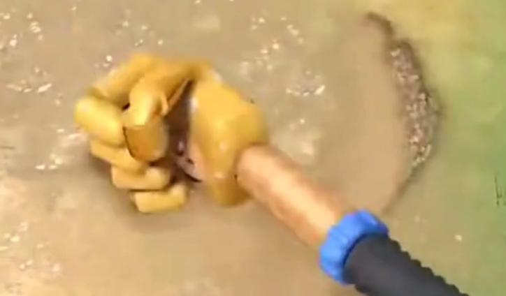 古有鲁智深倒拔垂杨柳,今有光头强驾驶吊车倒拔苹果树。