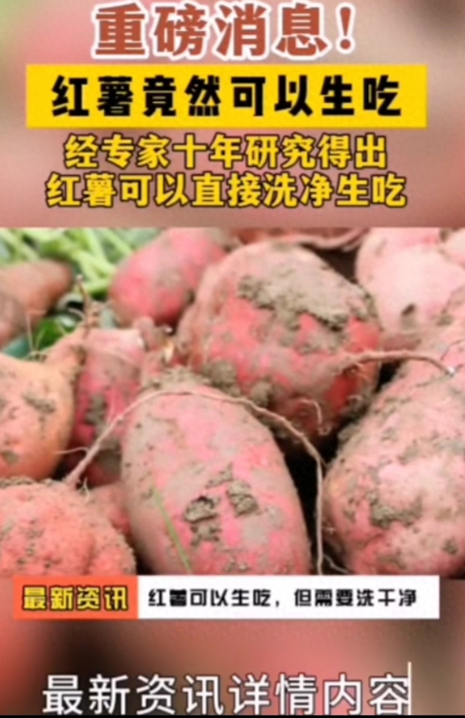 专家研究10年得出红薯洗净之后可以生吃?谣言!!!!!!