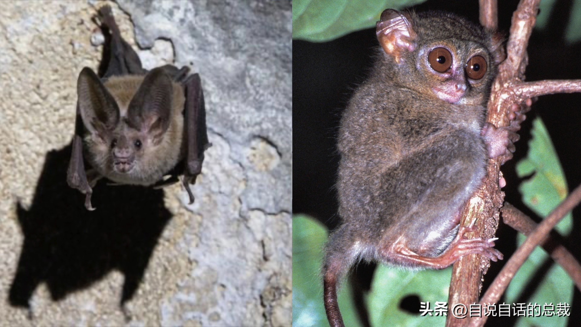 蝙蝠正在利用回声定位,眼镜猴则使用巨眼夜视。