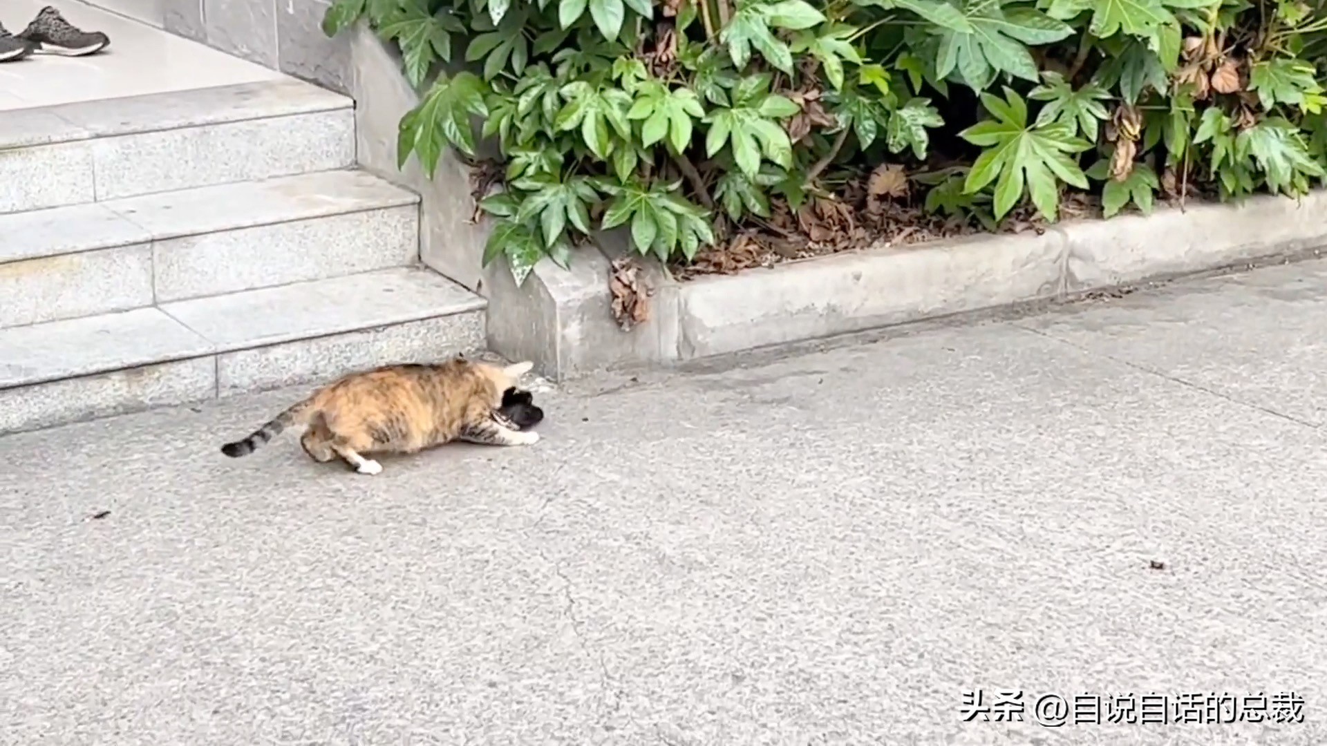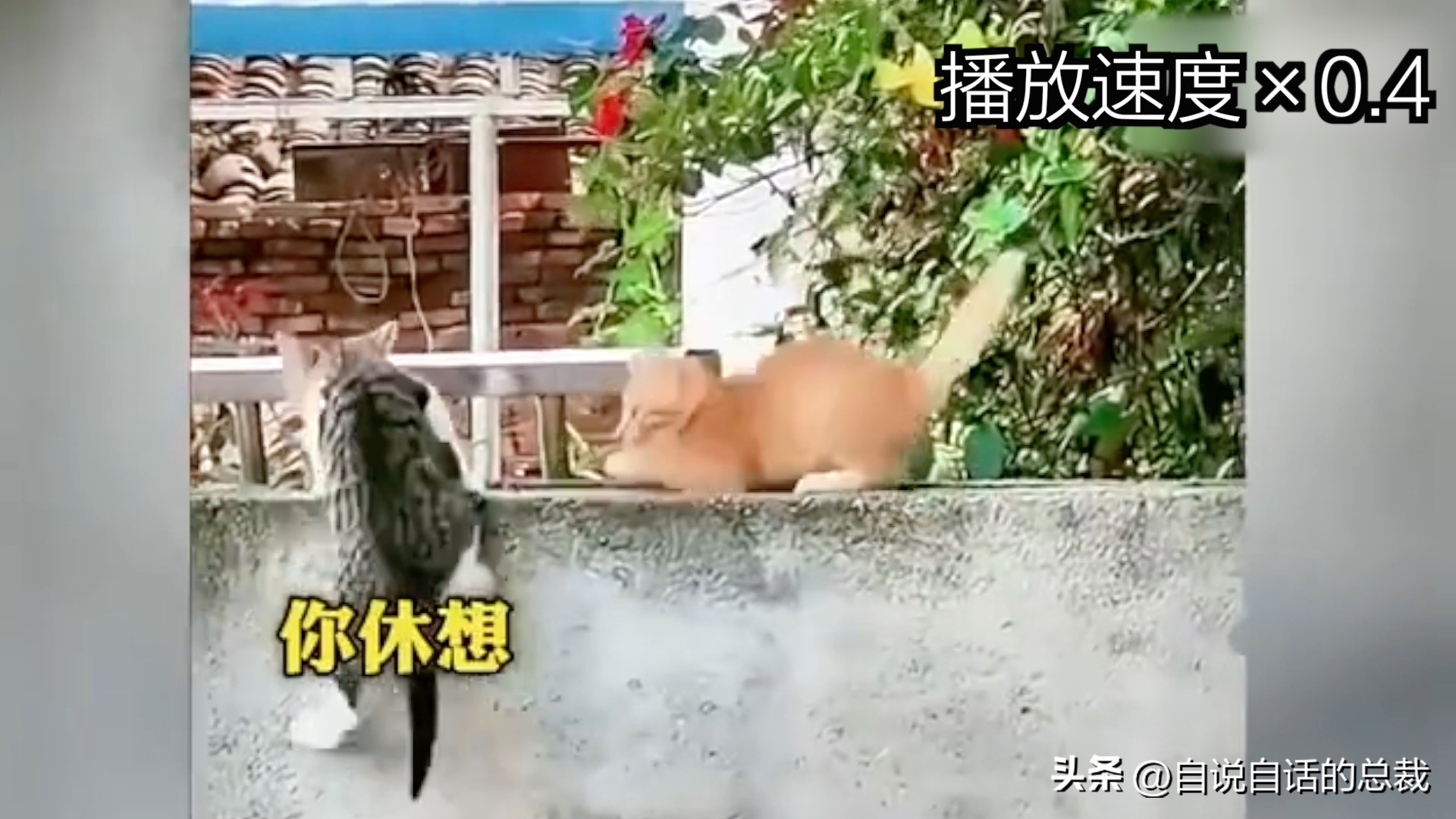 在这段影片中我们可以看到,左边那只小猫在即将掉落高墙的瞬间,一个鹞子翻身就从另一个角度稳住了身形,动作干净利落,透着一股潇洒劲儿,妥妥的平衡大师本师。
