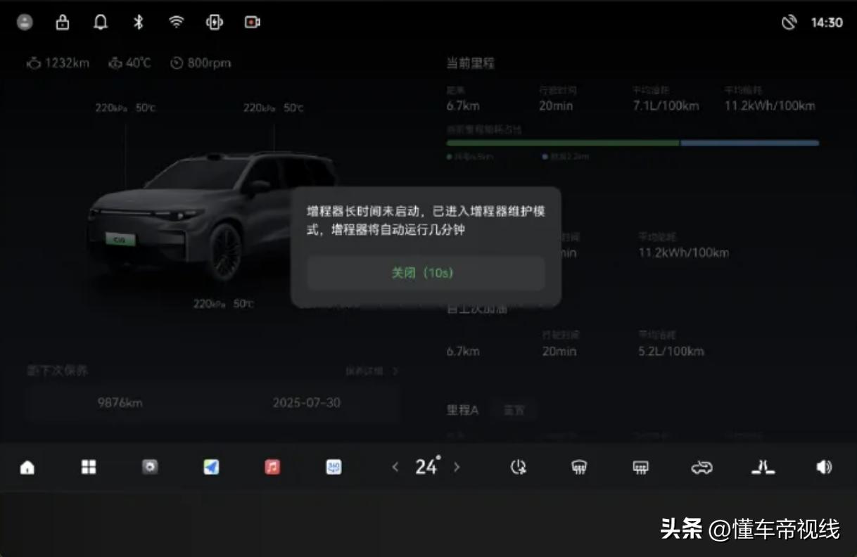 - 发动机定期启动(增程车型):长时间(30天)未启动增程器时,增程器自动开启,以保护发动机的润滑系统。