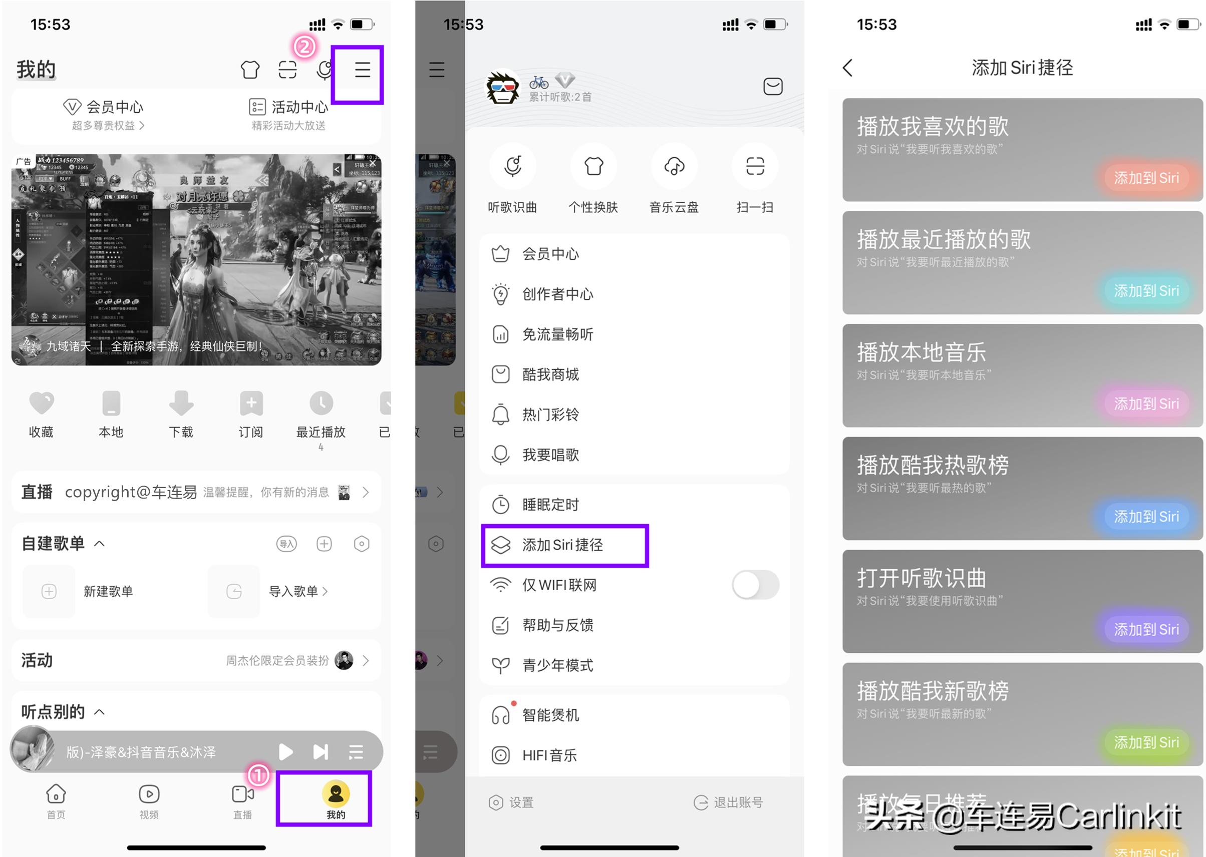 车机系统转换盒子专家——“车连易”的本次教程,支持QQ音乐/网易云音乐/咪咕/酷狗/酷我/apple music,设置大同小异,总共两个步骤:设置app内歌单、设置快捷指令。