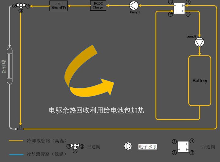 - 第三种是电机余热利用。咱们都说电机比发动机强,就是因为效率高;不幸的是,电机效率越高,余热就越少…… 就说余热利用,涉及到管道泵阀的设计,不同车企的水平差异还是很大的。