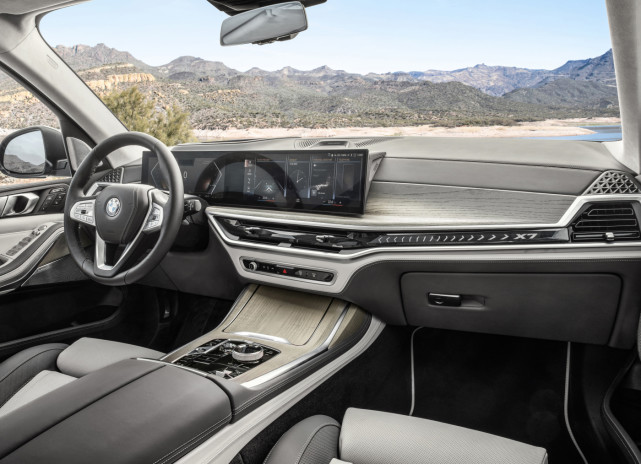 新X7内饰是比较有意思的地方,奔驰开启了双联屏时代,但是新一代S级已经不再使用这种布局,可宝马却后知后觉地跟上这种风格,iX是双联屏,新X7也是。