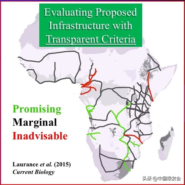 随着人类足迹的迅速扩大,对野生动物来说,可怕的事情正在到处发生。本研究团队中的一位领导比尔·劳伦斯(Bill Laurance)的研究显示,33条非洲“发展走廊”如果建成,将超过50,000公里长,这条经济走廊纵横交错,将会导致其生态系统被切割成几十个小块。