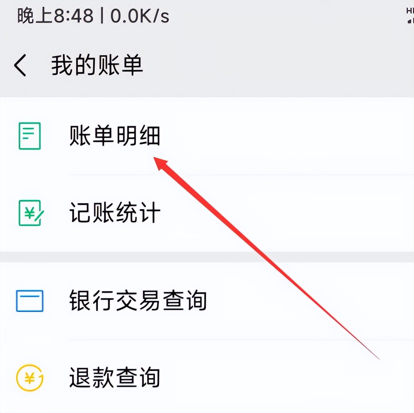 在微信中导出流水账单