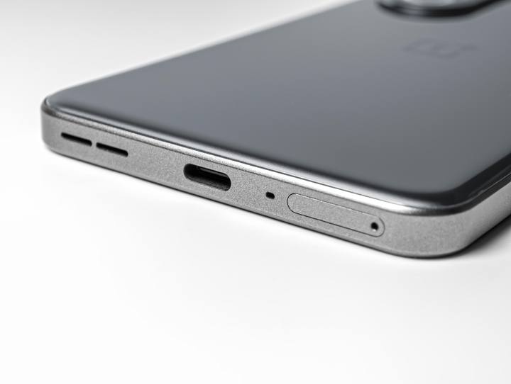机身左侧靠上方的三段式静音键是一加的传统,依然被保留了下来,可以很方便的调整手机正常/振动/静音状态,上面有棱形凹凸纹路便于盲操作。