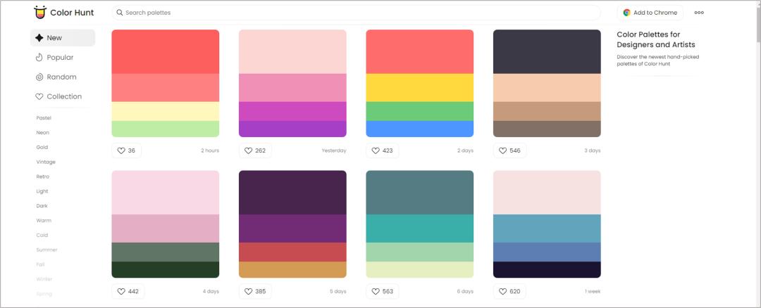 当然,我们也可以换一个颜色,如果不会配色,可以用配色网站,推荐一个color hunt 这个网站。