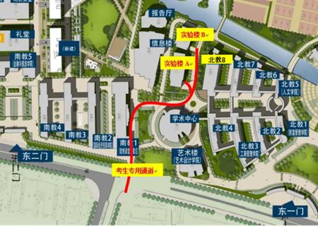 注意:私家车不能进校区,校门口无场地停车,建议考生选择公共交通出行(公交302、301、238、58、506、115;地铁1号线芦港站下车,步行500米)。