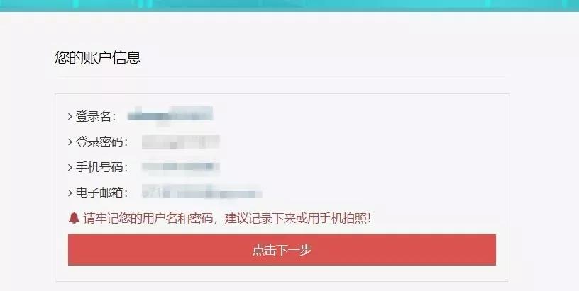 用户名和密码是您登录系统的重要凭证,请牢记。(建议拍照记录!)