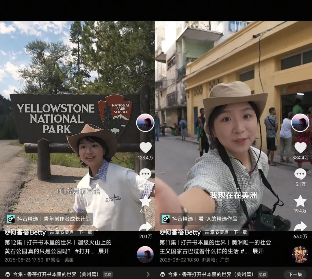 抖音作者“何香蓓Betty”19岁时就在美国旅行打工四个月,现在更是化身“爱冒险的朵拉”,带着超千万抖音用户领略全世界的美景。三位00后大学生创立的“清年阁”凭借邀请清北学霸、奥赛冠军讲题的方式,抖音单日涨粉超百万,组建了一座属于中国青年的 “霍格沃兹”……