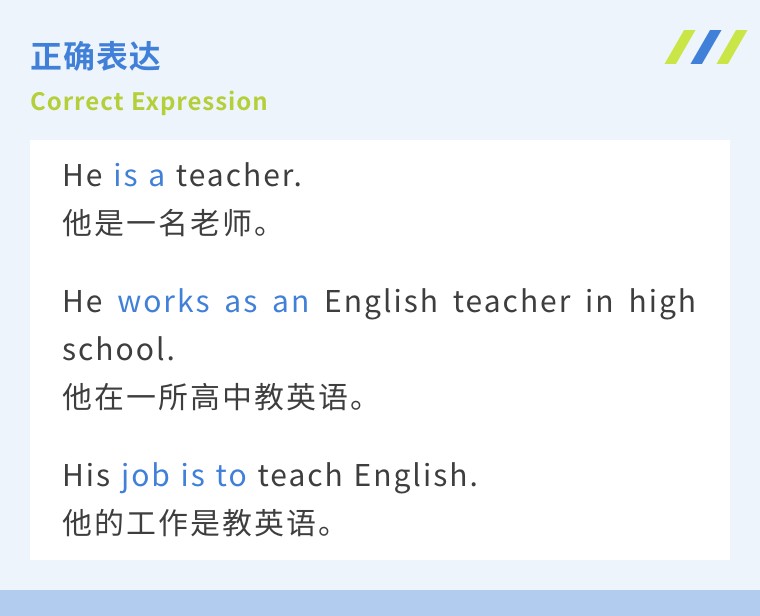 “my job is a teacher”其实是中式英语?正确表达应该是啥?