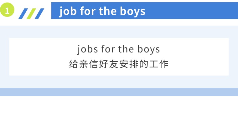 原来在古老的英国,the boys指的是每个阶层的男人们结成的小团体,所以jobs for the boys就是小团体内部互相安排的工作啦。