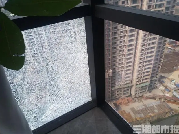 2020年,长沙一高层写字楼30多户玻璃炸裂,楼下就是繁华夜市。