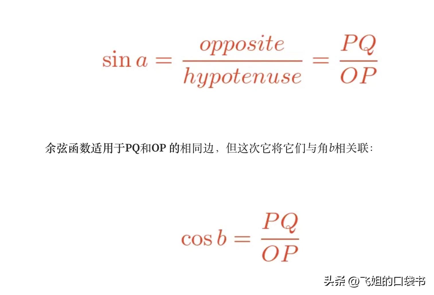 需要明确的是, sin a的值告诉我们角度a的长度PQ(即x ) 。cos b的值也告诉我们x的值,但是根据角度b。