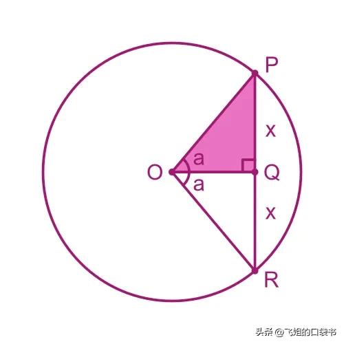 所以sin a告诉我们长度x,它是构成弦PR一部分的三角形边的长度。我们称它为正弦函数,因为正弦表示和弦。