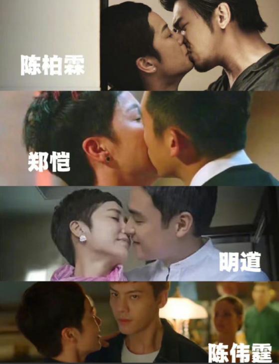 不仅如此,她还与陈柏霖、郑凯、陈伟霆、明道等一众男星也纷纷与上演起了“处处吻”。