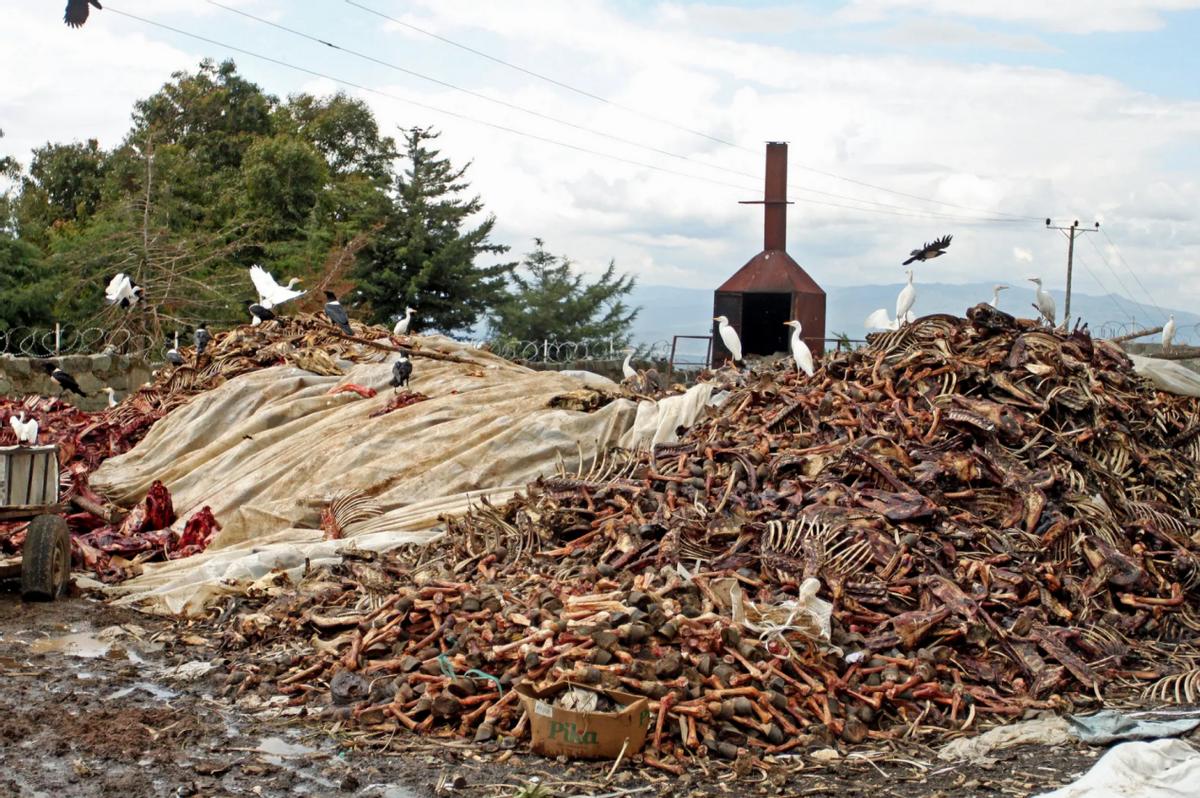 肯尼亚奈瓦沙屠宰场堆积如山的驴尸体