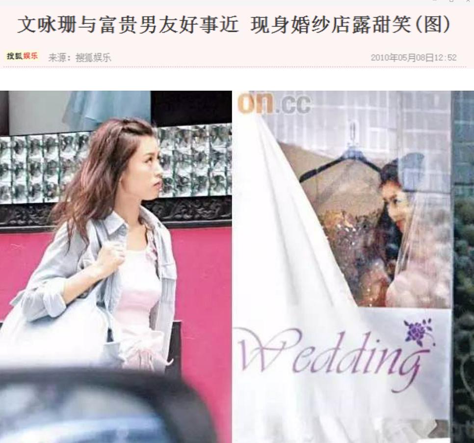 2010年时,媒体上还传出两人要结婚的喜讯,文咏珊在婚纱店里言笑晏晏,像一个幸福快乐的准新娘。