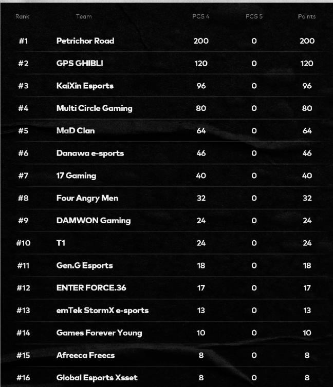 而在夏季赛火热进行的同时,绝地求生官方也公布了PCS4打完后的世界赛积分,拿下洲际赛冠军的PeRo目前以200分排在第一,KX则以96分排在第三,MCG拿到80分排第四,17和4AM分别拿下40分和32分,GFY则仅拿到10分。从目前的积分来看,PeRo已经是提前锁定年底PGC世界赛的名额了,所以夏季赛压力小很多,可以放开了打。