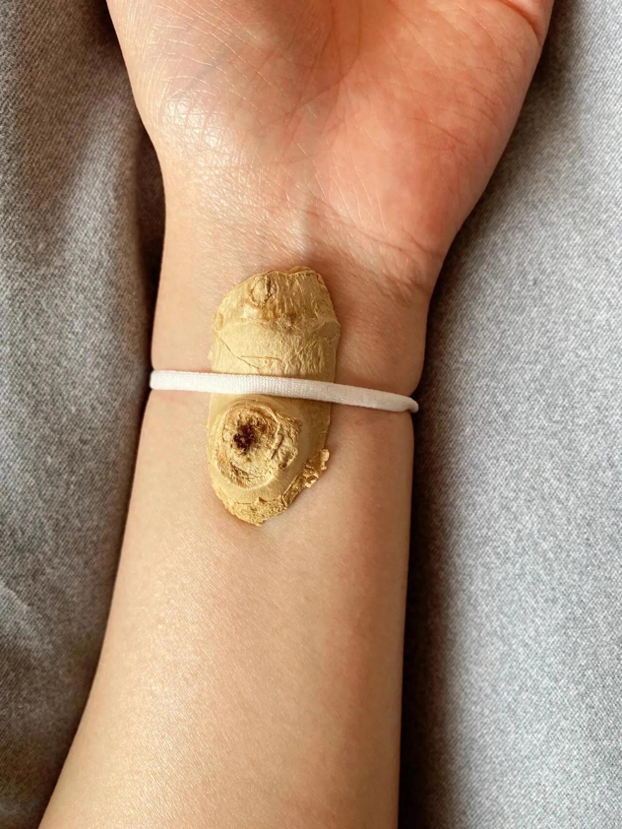 今天让老公切了两片生姜贴在手腕上,刚贴上就感觉恶心感「唰」地退下去了!现在贴了1小时,居然能正常吃午饭了,感动到想给姜片磕头啊!!