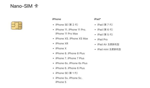 (各iPhone机型所适用的SIM卡类型)